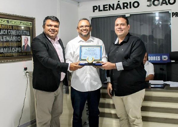A Câmara Municipal de Damião realizou na noite de ontem, 24 de novembro, uma sessão solene marcada por homenagens a personalidades que contribuíram com o município. Na ocasião, foram entregues Moções de Aplausos ao Sr. José Cícero de Araújo e ao Sr. Genival Mendes Barbosa, reconhecendo seus relevantes serviços.